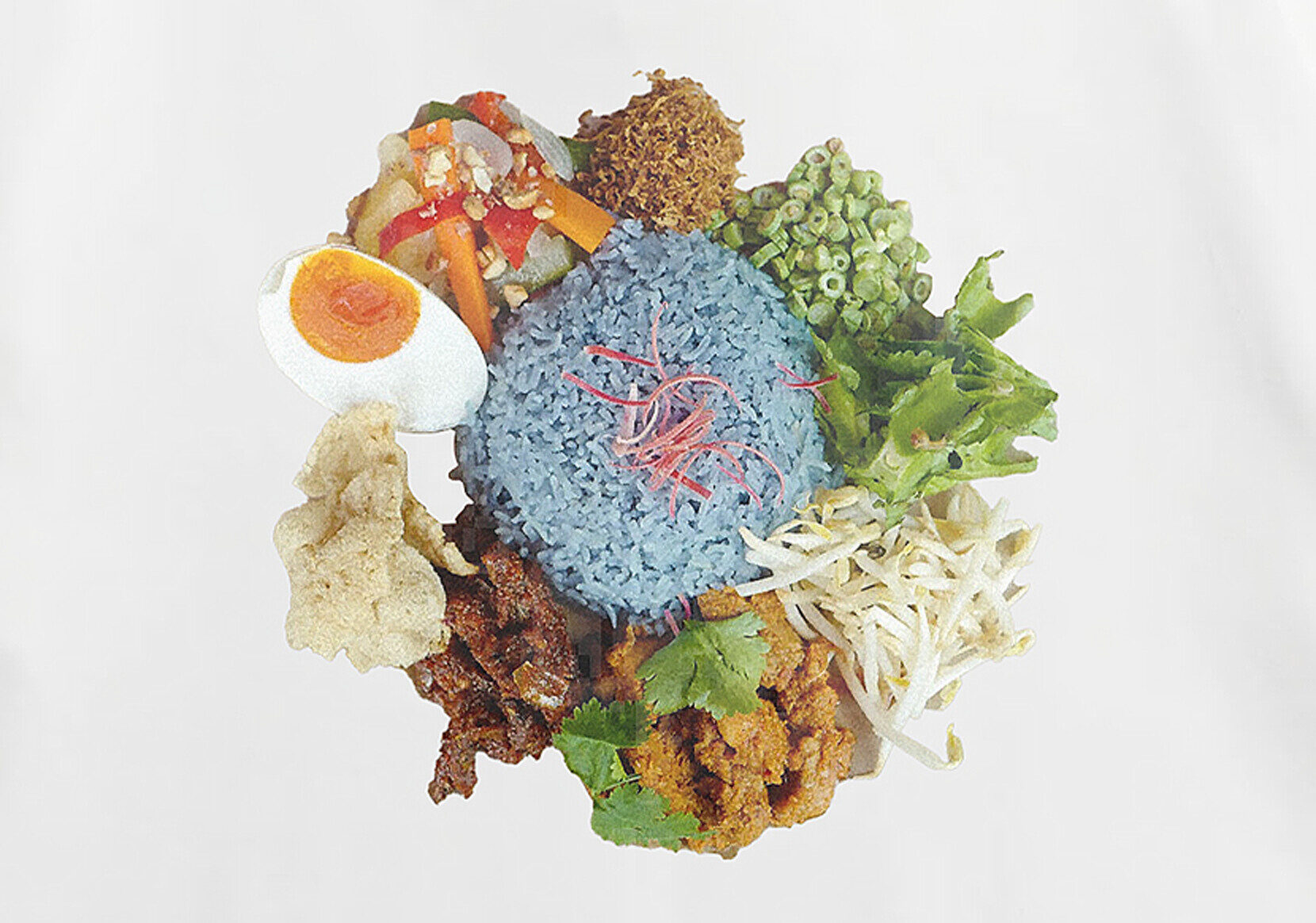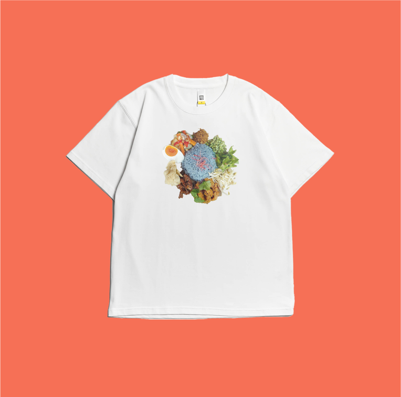 A Shirt created to represent Malaysia, the bright colours of Nasi Kerabu displayed in its vibrancy, intended to be packaged in takeaway packaging to simulate the real thing!